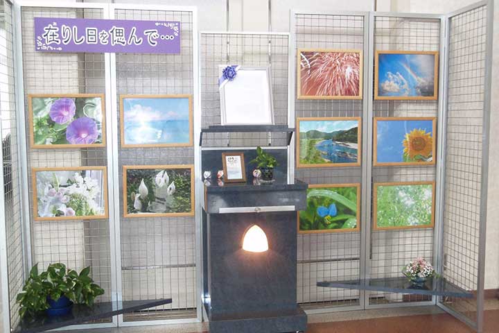 故人様のお写真や遺品を展示する偲ぶコーナーを設置しております。